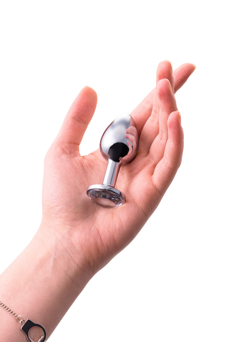 нальная пробка из коллекции анальной ювелирки Toyfa Metal из медицинской стали декорирована большим сверкающим кристаллом.
