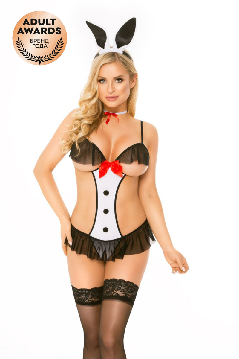 Одновременно милый и дерзкий костюм игривого зайчика состоит из открытого тедди, тканевого чокера и ободка с ушками.