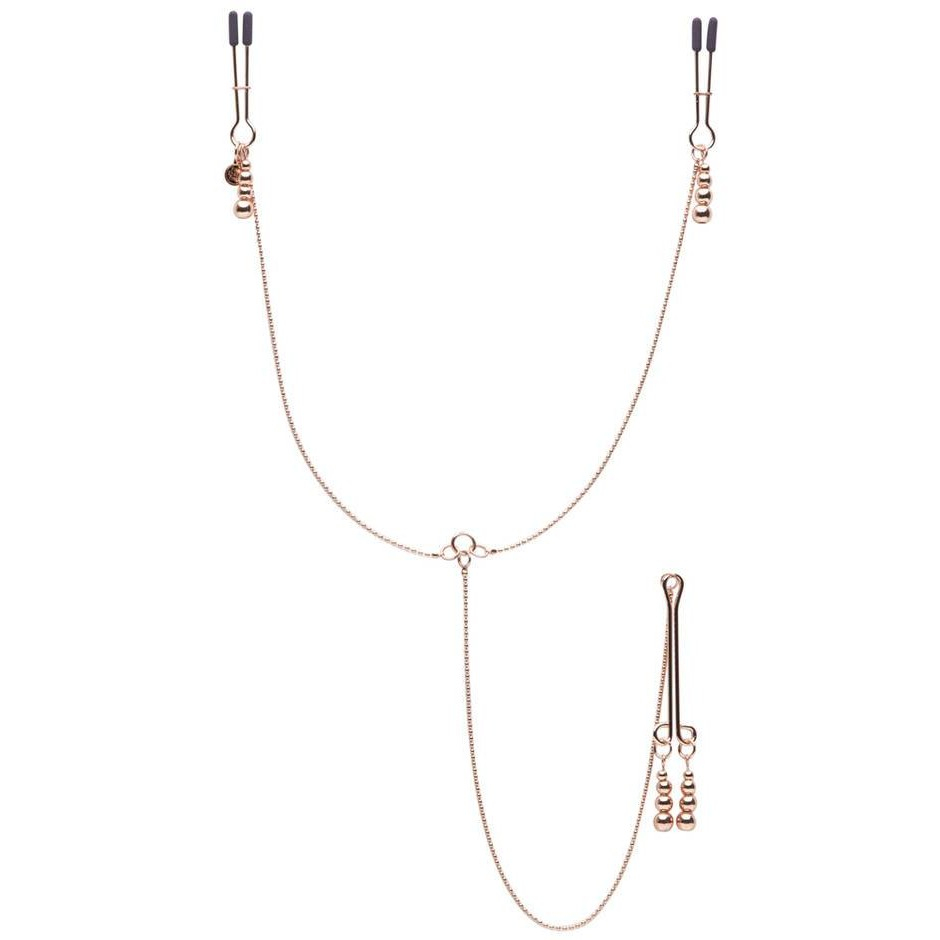 Fifty Shades Freed Зажимы для сосков и клитора. Металлические зажимы на соски с подвесками в виде цепочки из бусин. Степень сжатия сосков легко регулируется при помощи удобного механизма. Концы зажимов покрыты силиконовыми накладками для предотвращения повреждений сосков. Аксессуар обеспечит Вас новыми ощущениями и разнообразит сексуальную жизнь.