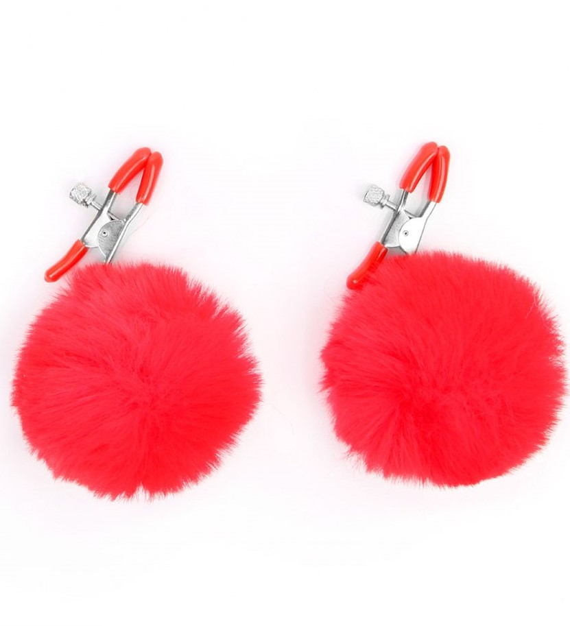 Оригинальные зажимы для сосков, украшенные меховыми помпонами, придутся по вкусу любителем БДСМ-аксессуаров!