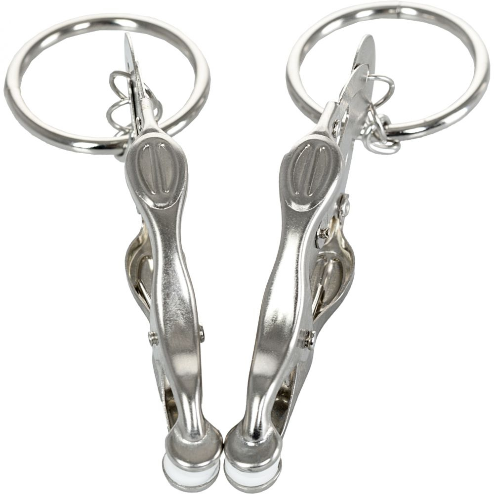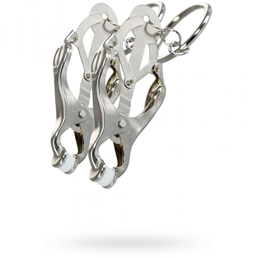 Зажимы для сосков с пружинным механизмом. Эта конструкция одна из самых жестких, но позволяет разнообразить игру. На каждом зажиме есть кольцо, к которым вы можете привесить грузик или соединить их цепочкой. Все зависит от ваших желаний!
